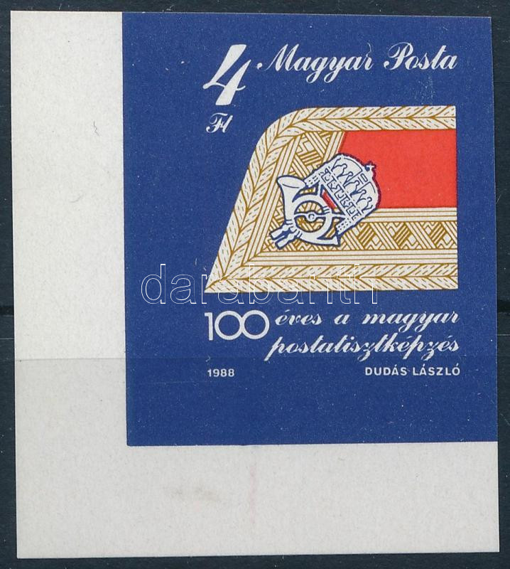 1988 100 éves a magyar postatisztképzés ívsarki vágott bélyeg