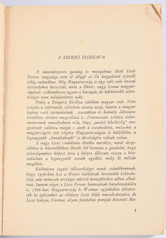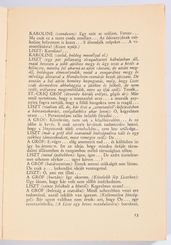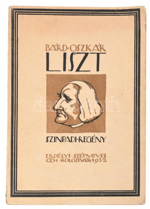 Bárd Oszkár: Liszt. Színpadi regény. Kolozsvár, 1932, Erdélyi Szépmíves Céh,(Minerva-ny.), 1 (címkép) t.+243 p. Első kiadás! A címlapon Liszt Ferencet ábrázoló linómetszettel. Kiadói papírkötés, az utolsó lapon lyukkal, egy szót ceruzás íréssal pótoltak.