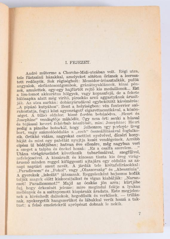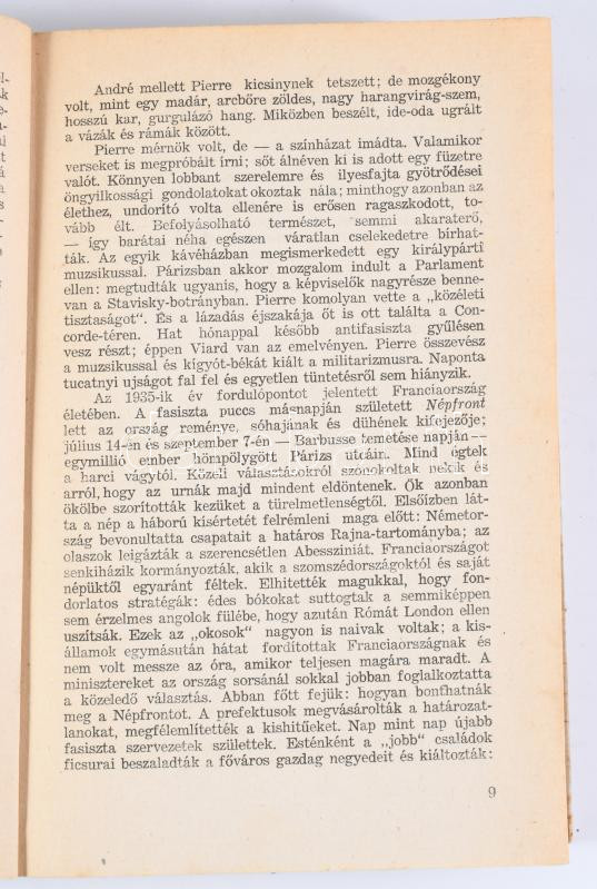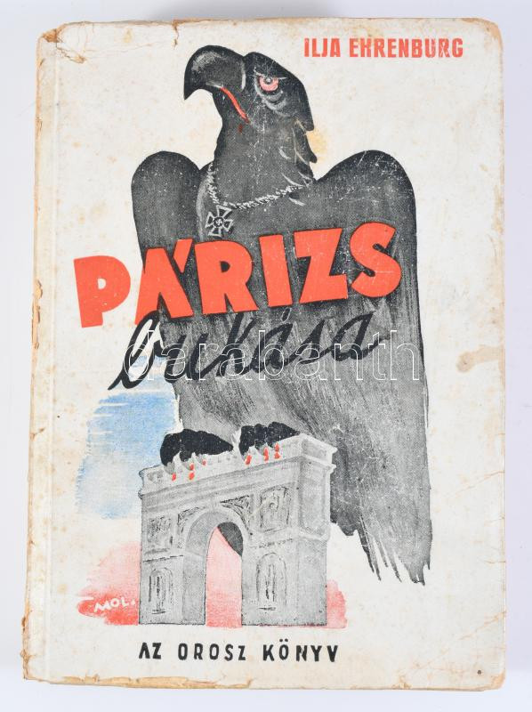 Ehrenburg, Ilja [Grigorjevics]: Párizs bukása. Ford.: Benamy Sándor. Kolozsvár, 1945, Az Orosz Könyv (Minerva-ny.), 538+[2] p. Első magyar nyelvű kiadás. Kiadói illusztrált papírkötés, kissé foltos, sérült borítóval és gerinccel, belül a lapok nagyrészt jó állapotban.