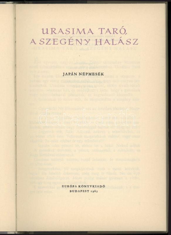 Urasima Taró, a szegény halász. Japán népmesék. Bp., 1965, Európa. Kiadói kartonált kötés, papír védőborítóval, jó állapotban.