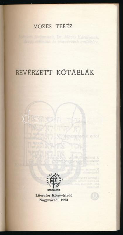 Mózes Teréz: Bevérzett kőtáblák. Nagyvárad, 1993, Literator. 219p. Kiadói papírkötés, jó állapotban.