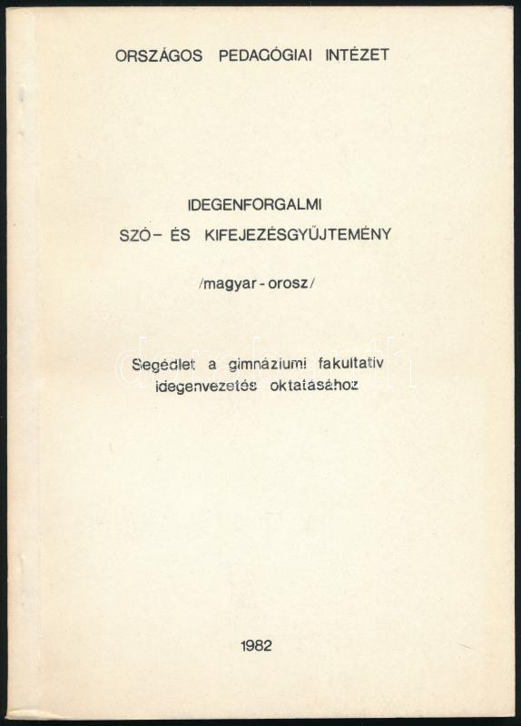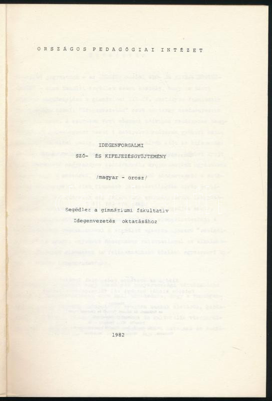 Fülöp Károlyné: Idegenforgalmi szó- és kifejezésgyűjtemény. (Magyar-orosz.) Segédlet a gimnáziumi fakultatív Idegenvezetés oktatásához. [Bp.], 1982, Országos Pedagógiai Intézet, 134 p. Kiadói papírkötés. Megjelent 500 példányban.