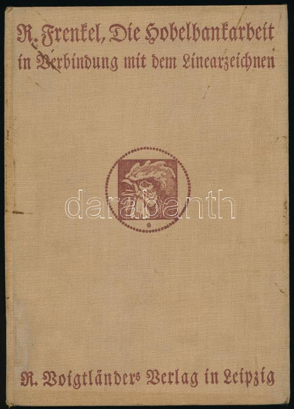 Frenkel, [Reinhold]: Die Hobelbankarbeit in Verbindung mit dem Linearzeichnen. Ein Lehrgang des Arbeitsunderrichtes für Schulen, Schülerwerkstätten und Erziehungsanstalten. Leipzig, 1911, R. Voigtländer, VIII+59+[5] p.+ 52 t. Szövegközti és egészoldalas ábrákkal illusztrálva. Német nyelven. Kiadói egészvászon-kötés, kissé foltos borítóval, régi intézményi bélyegzővel.