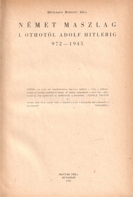 Budapest, 1945. Magyar Téka (Általános Nyomda és Grafikai Intézet Rt.) 168 p. Egyetlen kiadás.