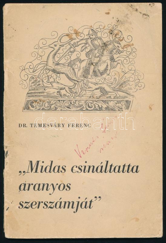 Dr. Temesváry Ferenc: "Midas csináltatta aranyos szerszámját". Kaposvár, 1969, Somogy Mezei Múzeumok Igazgatósága, foltos, sérült papírkötés. Benne Haranghy Miklós grafikájával. A szerző által ALÁÍRT.