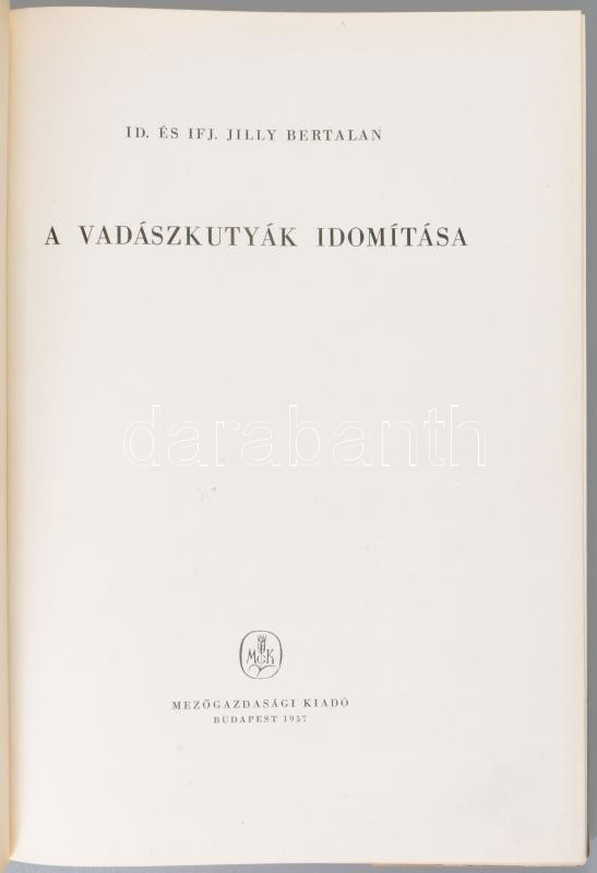 Jilly Bertalan, id. és ifj.: A vadászkutyák idomítása. Bp., 1957, Mezőgazdasági Kiadó, 209+3 p. 1. kiadás. Gazdag fekete-fehér fotóanyaggal illusztrált. Megjelent 2100 példányban. Kiadói félvászon-kötés, sérült, kissé kopott kiadói papír védőborítóban, bejelölésekkel.