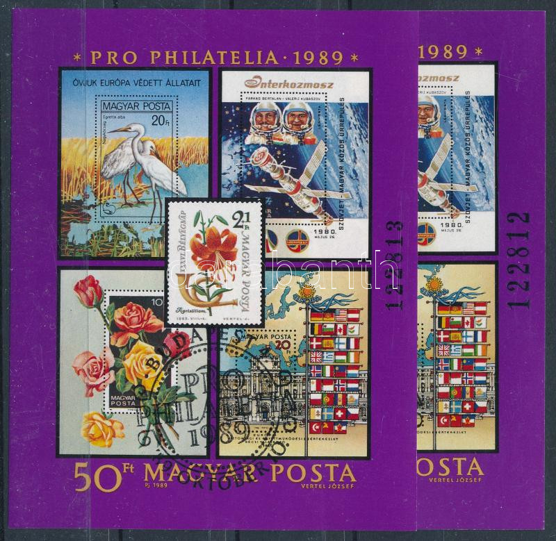 1989 Pro Philatelia 2 db sorszámkövető blokk kis és nagy sorszámmal
