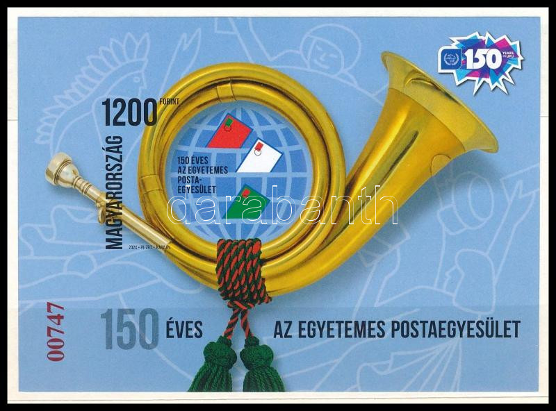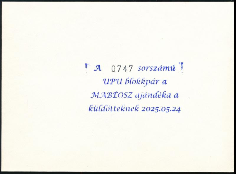 2024 150 éves az Egyetemes Postaegyesület fogazott + vágott blokk ajándék tokban, ajándék a MABÉOSZ küldötteinek