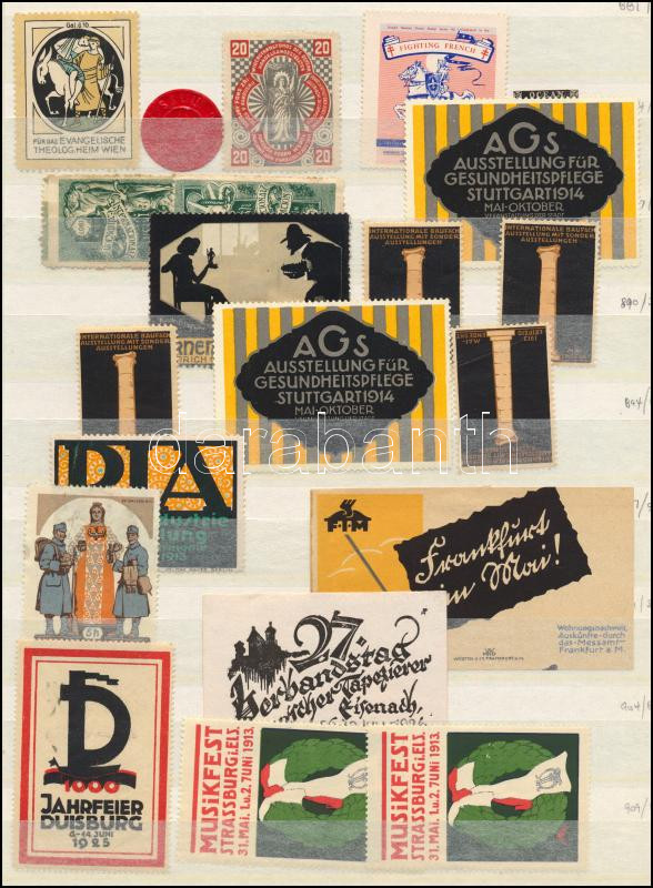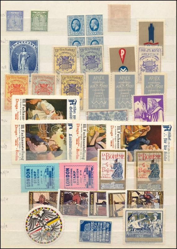 Régi, vegyes kiállítási levélzáró tétel berakólapon kb 50 db / Collection of old exhibition expo and other poster stamps on two pages