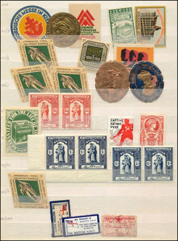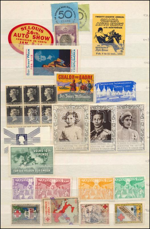 Régi, vegyes kiállítási levélzáró tétel két oldalas berakólapon / Collection of old exhibition expo and other poster stamps on two pages