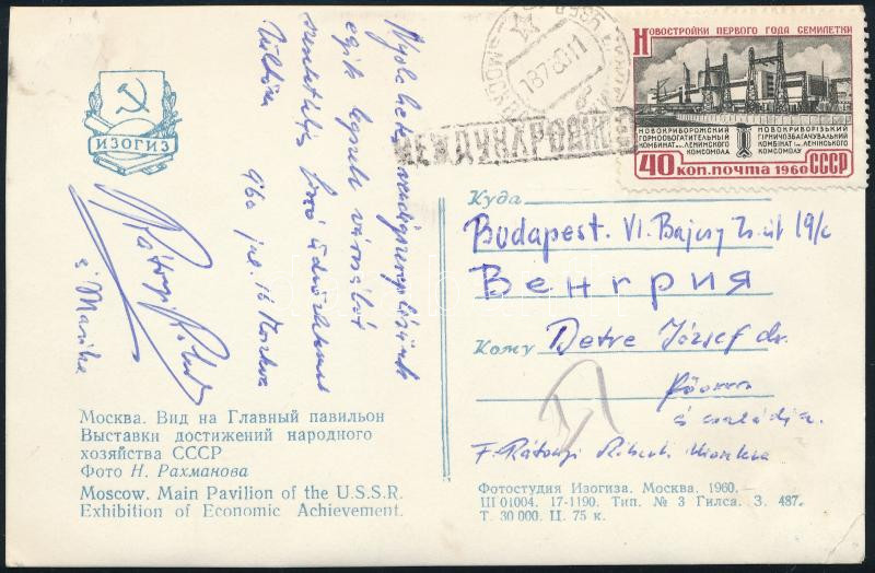 Rátonyi Róbert (1923-1992) autográf aláírása képeslapon