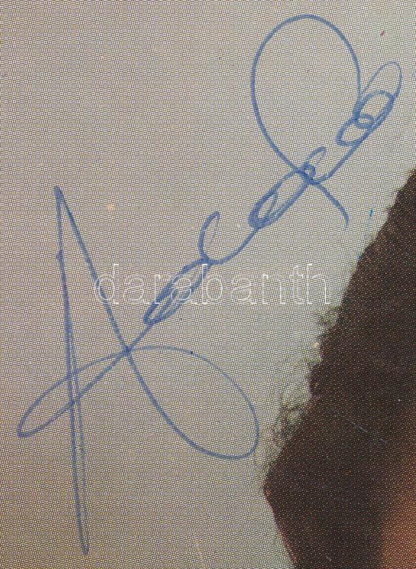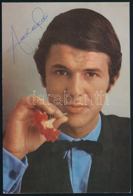 Salvatore Adamo (1943-) dalszerző, énekes aláírása az őt ábrázoló képen