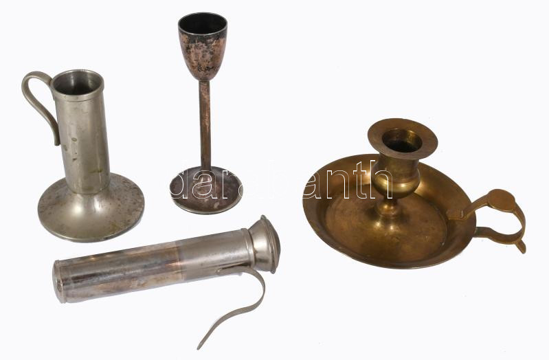 Kis fém bolha tétel, közte sétáló gyertyatartó, sörmelegítő, stb.