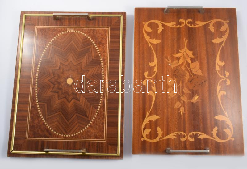 cca 1940, 2 darab art deco intarziás fatálca, kopással,cca 38x28 cm