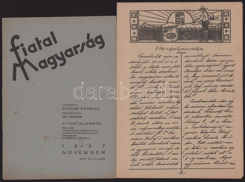 1937 Fiatal Magyarság, a magyar cserkészférfiak folyóirata egy száma + II. raj zászlószentelése / Műszaki cserkész folyóirat egy száma