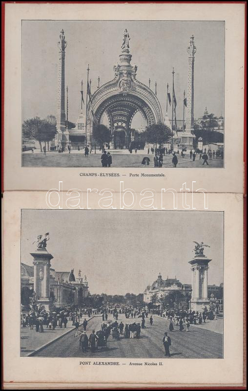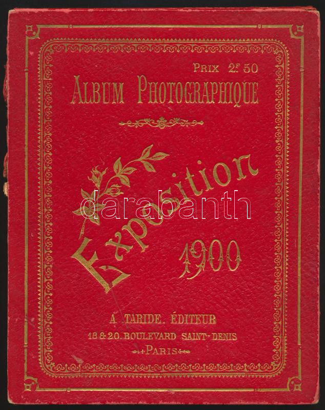 1900 Exposition 1900 Album photographique. 14 lapos képes leporello kb 22 képpel a világkiállításról. Aranyozott félvászon kötésben, hiányos gerinccel. 17x22 cm