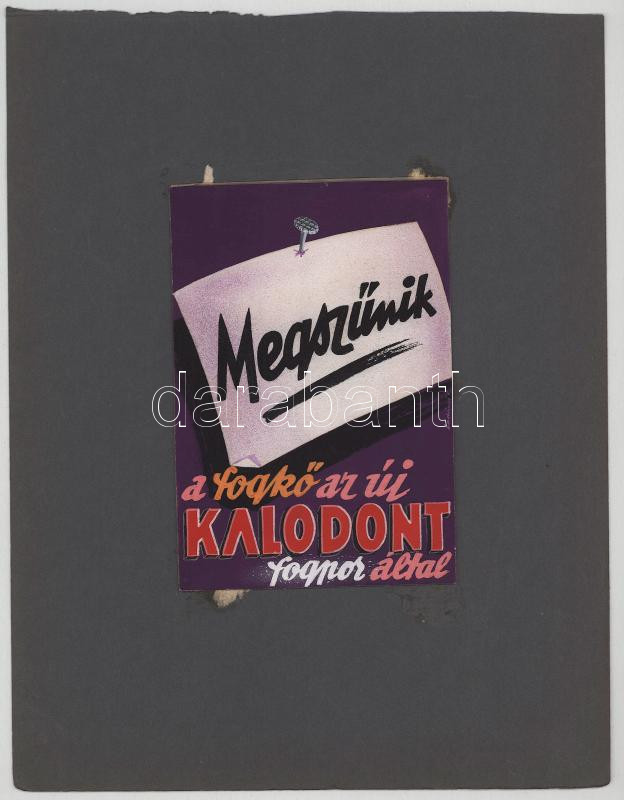 Ladányi József, működött a XX. sz. közepén: Kalodont fogkrém. Reklám- vagy plakátterv, 1940-es évek. Tempera, papír, jelzett, kartonra kasírozva 17x12 cm