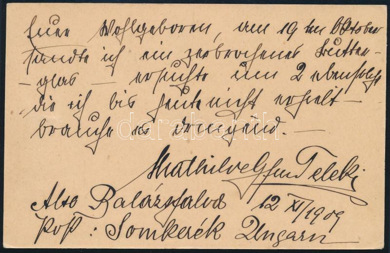 1909 Somkerék, Gróf Teleki Matild (1872-1919) által írt levelezőlap