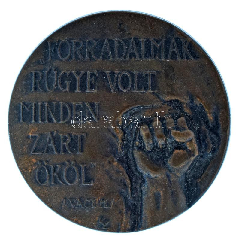 Képíró Zoltán (1944-1981) 1978. "Forradalmak rügye volt minden zárt ököl - Váci M." bronz jelvény (30mm) T:AU