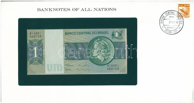 Brazil DN(1980) 1 Cruzeiro "B 15861 069708" in envelope with stamp and cancellation C:UNC