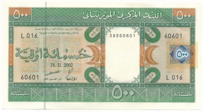 Mauritania 2002. 500 Ouguiya "B 016 38560601" C:XF unfolded, creases, corner folds