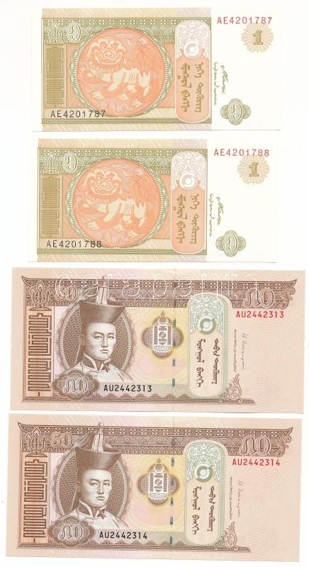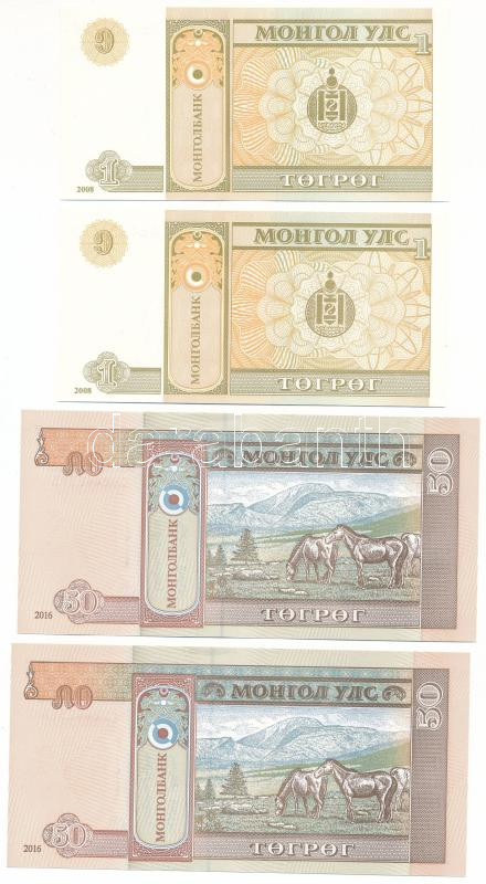 Mongólia 2008. 1T (2x) sorszámkövetők "AE4201787-AE4201788" + 2016. 50T (2x) sorszámkövetők "AU2442313-AU2442314" T:UNC-AU