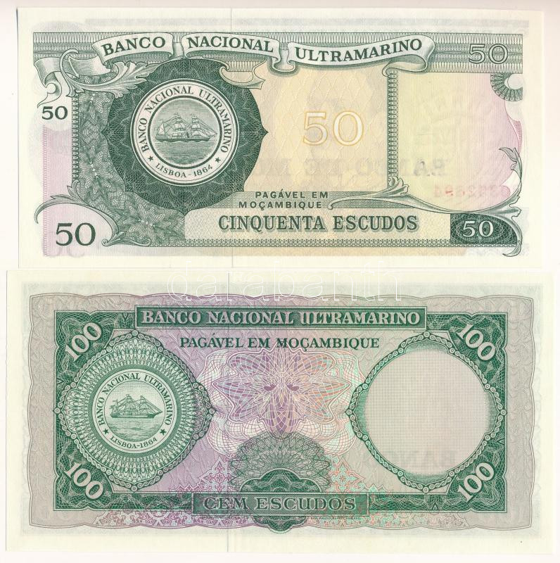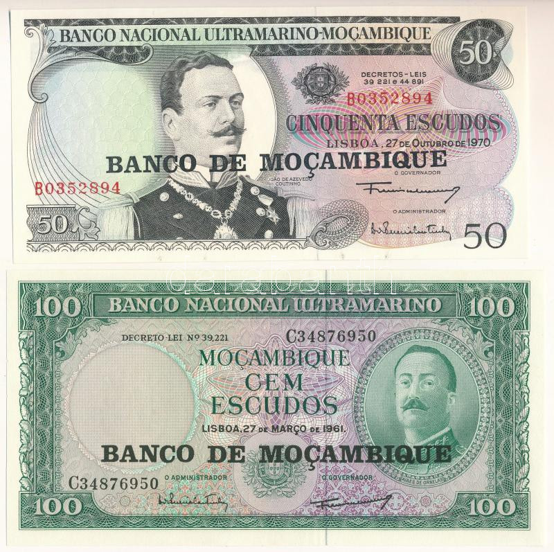 Mozambik 1976. (1970) 50E + 1976. (1961) 100E mindkettő fekete "BANCO DE MOCAMBIQUE" felülbélyegzéssel T:UNC