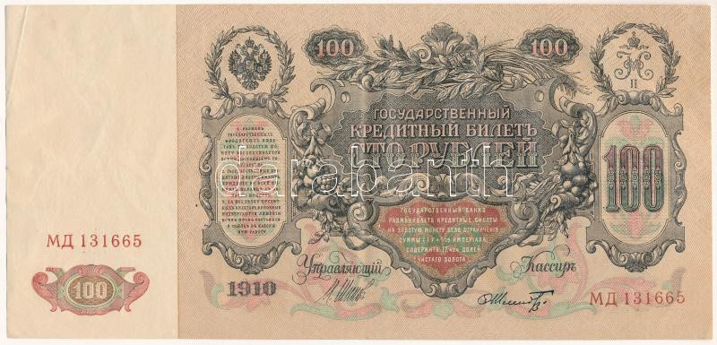 Russian Empire 1910. 100 Rubles "131665" Sign.: Shipov C:F fine paper