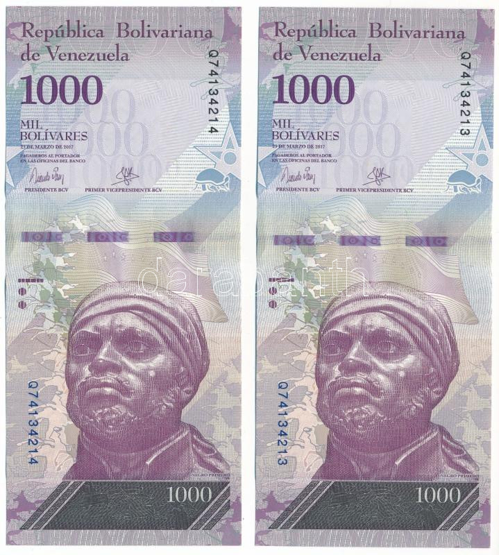 Venezuela 2017. 1000B (2x) sorszámkövetők "Q74134213 - Q74134214" T:UNC,AU
