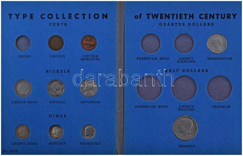 Amerikai Egyesült Államok 10db-os érme tétel, mind különféle, "Type Collection of Twentieth Century United States Coins" gyűjtőalbumban T:vegyes