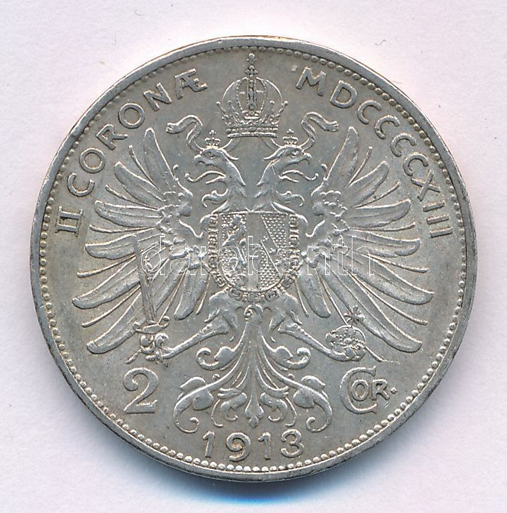Austria 1913. 2 Coronae Ag "Franz Joseph" C:XF,VF patina
