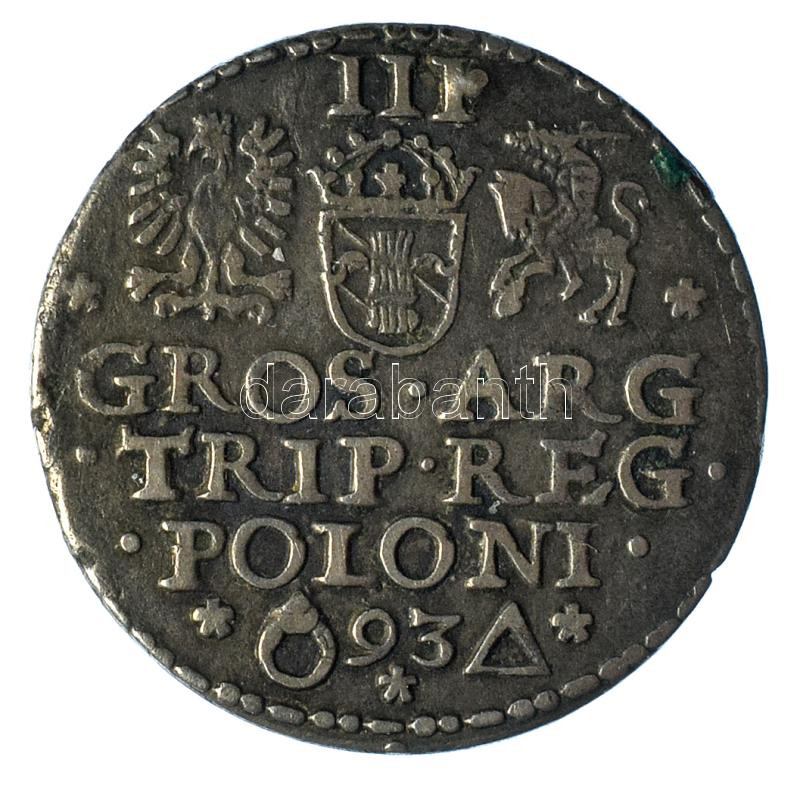 Polish-Lithuanian Commonwealth 1593. 3 Grossus (Trojak) Ag "Sigismund III" Malbork (2,30g) C:XF patina