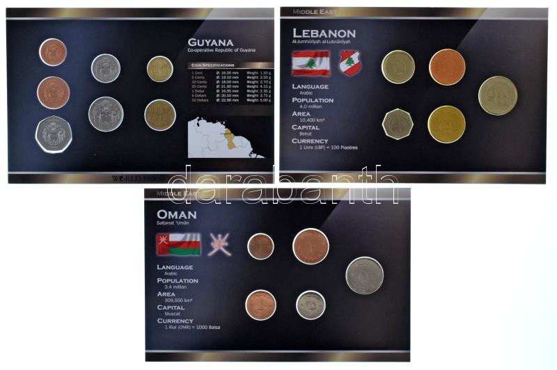 Omán 1999. 2B - 50B (5xklf) forgalmi összeállítás "World Money" + Libanon 1996-2006. 25L-500L (5xklf) forgalmi összeállítás "World Money" + Guyana 1991-2002. 1c - 10$ (7xklf) forgalmi összeállítás "World Money" T:UNC