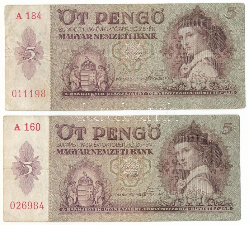 1939. 5P (2x) T:F kis beszakadás mindkettőn