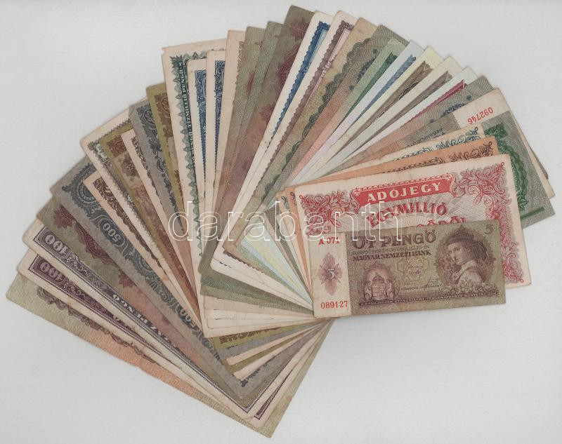 Vegyes 34db-os pengő-forint bankjegy tétel, benne: 5P-1.000.000.000MP (29db) + 10Ft-100Ft (5db) T:vegyes