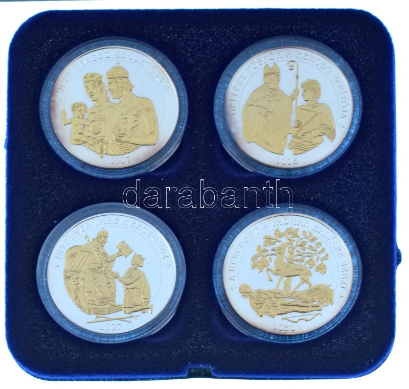 DN "Árpád-házi Szent Imre legendája" dombor-aranyozott, ezüstözött Cu-Ni emlékérem sorozat dísztokban, tanúsítvánnyal, benne "Imre herceg születése", "Gellért püspök, a tanító", "Intelmek", "Imre herceg halála" (38,61mm) T:PP