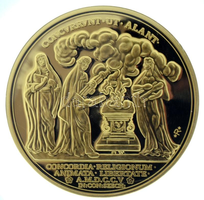 DN "Magyar Aranyóriások - II. Rákóczi Ferenc emlékérem, 25 aranydukát, 1705" aranyozott Cu utánveret kapszulában, tanúsítvánnyal (46mm) T:PP