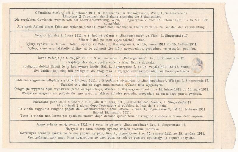 Ausztria 1911. 1K értékű "Rudolf von Habsburg Lotterie" Habsburg Rudolf által támogatott lottójáték szelvénye T:F szép papír