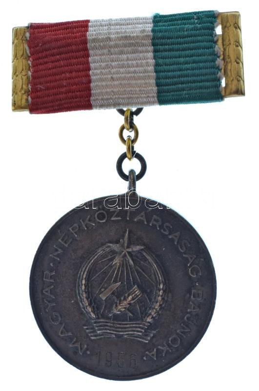 1956. "A Magyar Népköztársaság Bajnoka - 1956 / OTSB (Országos Testnevelési és Sportbizottság)" kétoldalas fém evezős díjjelvény szalagon, gravírozással, eredeti Rákosi-címeres tokban (30mm) T:AU patina