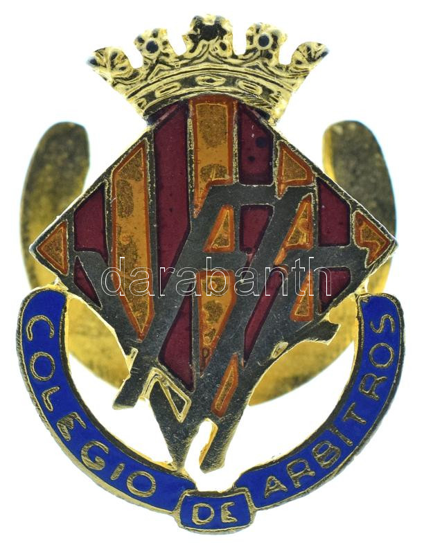 Spanyolország 1950-1960 k. "Colegio de Arbitros (Játékvezetői Kollégium)" a spanyol játékvezetői kollégium zománcozott bronz gomblyukjelvénye (Valenciai Közösség Labdarúgó Szövetsége) (15x20mm) T:AU,XF