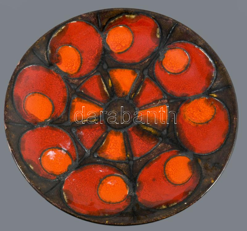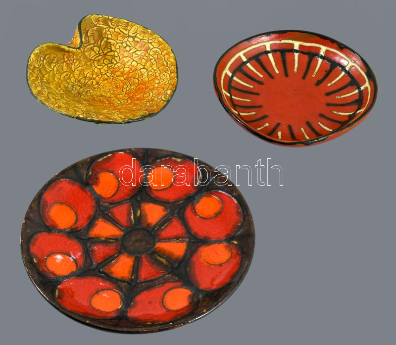 3 darab retro iparművész tányér, kínáló, közte Magyarszombatfa, felületi sérüléssel, h: 18,5 cm