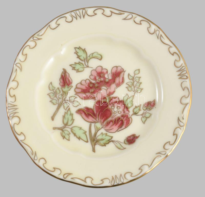Zsolnay aranykontúrozott gyűrűtartó, jelzett, hibátlan, d: 8,5 cm