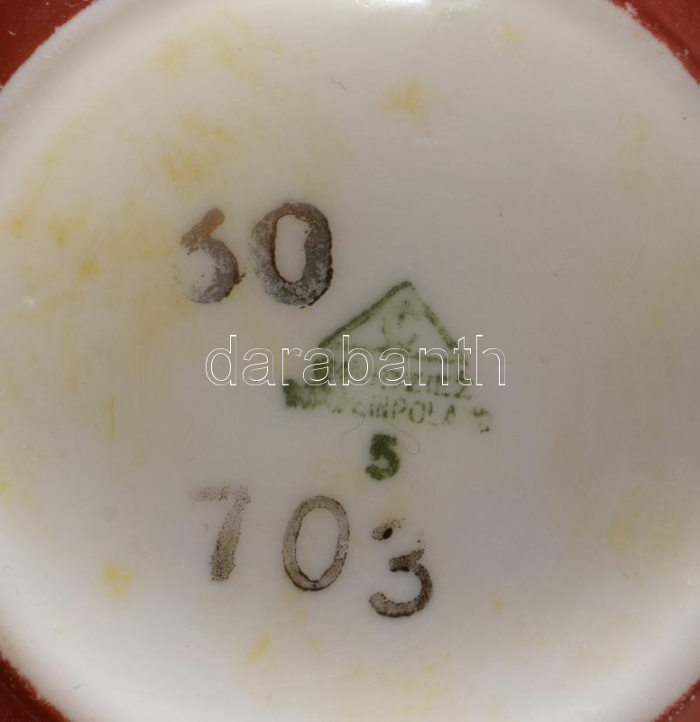 Hollóházi porcelán Szász Endre által tervezett mintával díszített plakett, jelzett, hibátlan, 6,5x4 cm