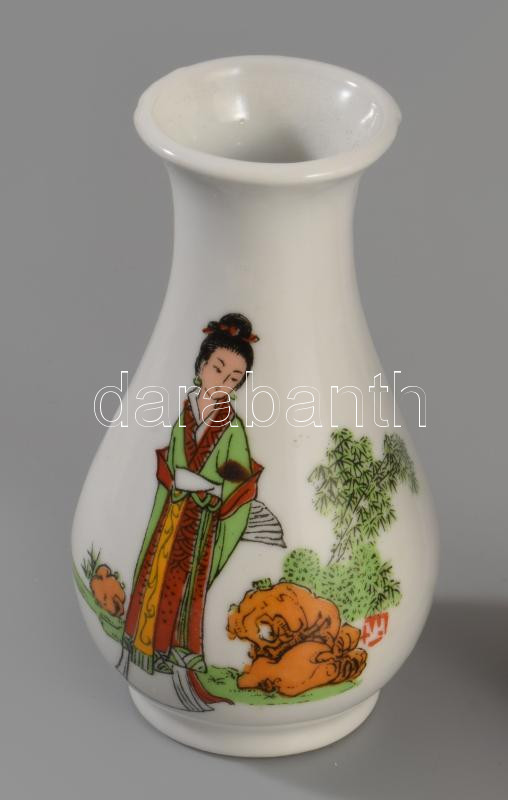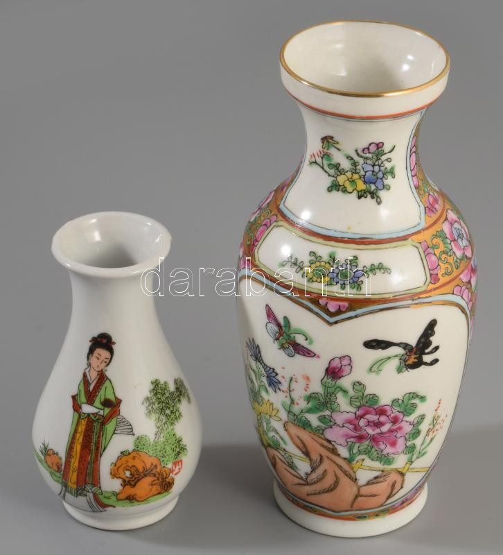 2 darab kínai porcelán váza, jelzett, m: 10-16 cm