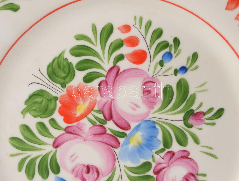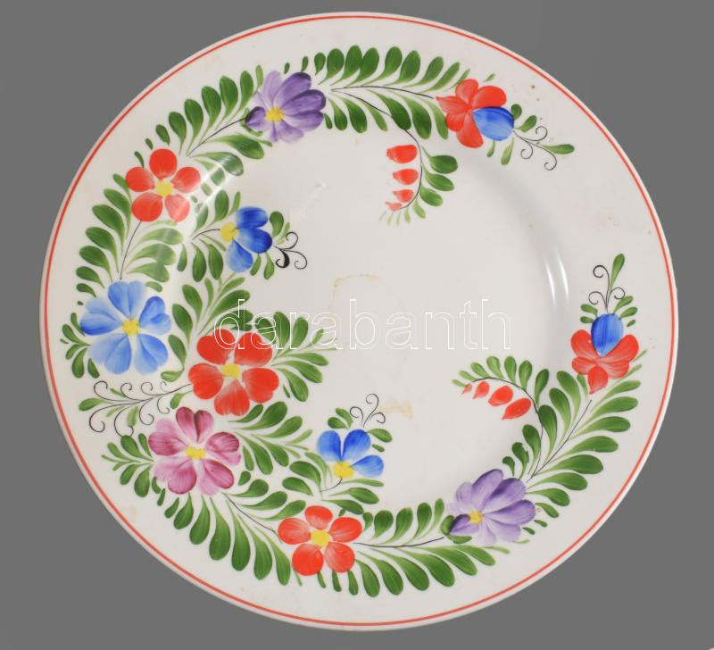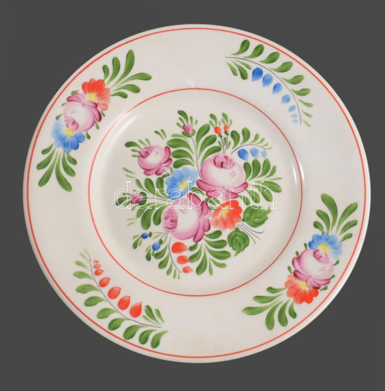 Hollóházi labdarózsa mintás tányér. Kézzel festett, jelzett, hibátlan d: 21 cm
