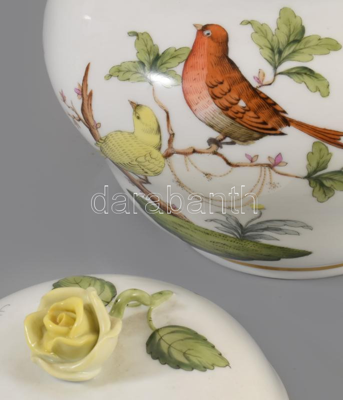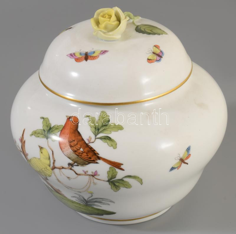 Herendi Rotschild mintás fedeles váza. Kézzel festett, jelzett, kis kopással d: 17 cm, m: 12 cm