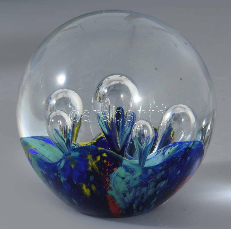 Buborékos anyagú levélnehezék, belső színezéssel, m: 6,5 cm
