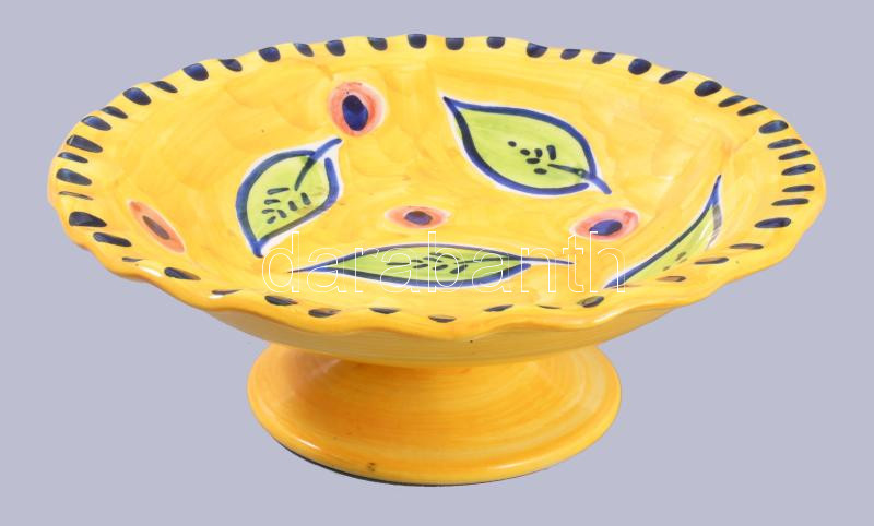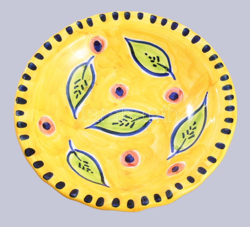 Kínáló naiv mintákkal mázas kerámia, hibátlan d: 22 cm