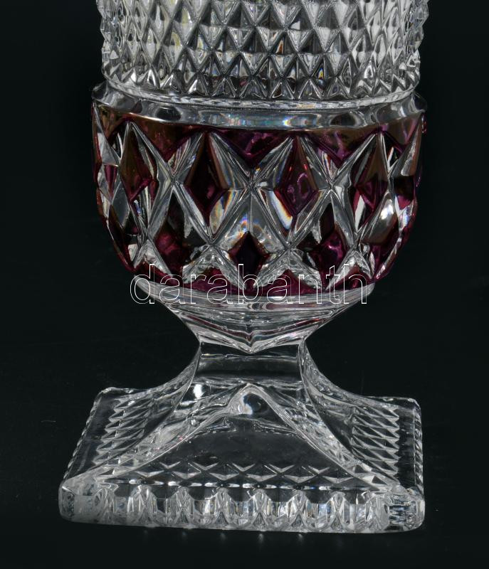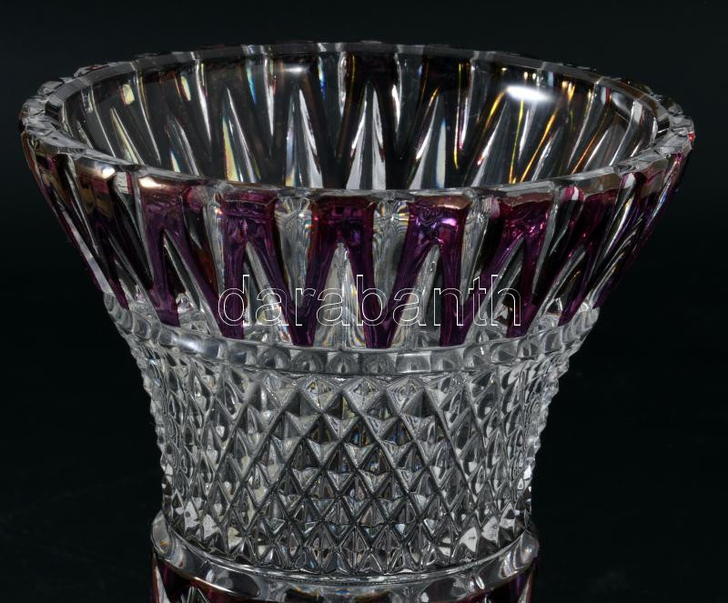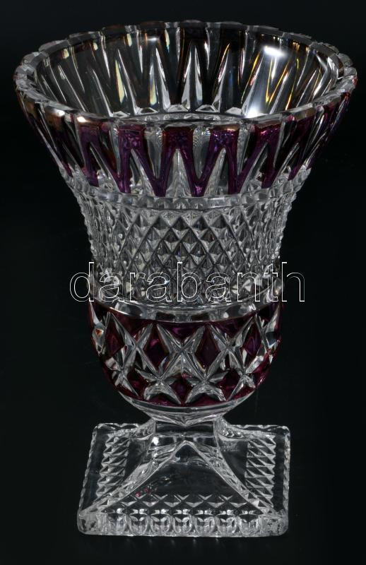 Magyar ólomkristály talpas váza, minimális kopással, m: 16,5 cm