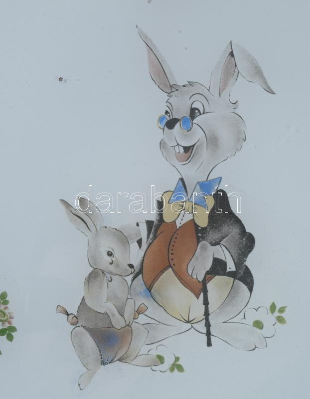 Nyuszis üveg tál, matricás, hibátlan d:27 cm